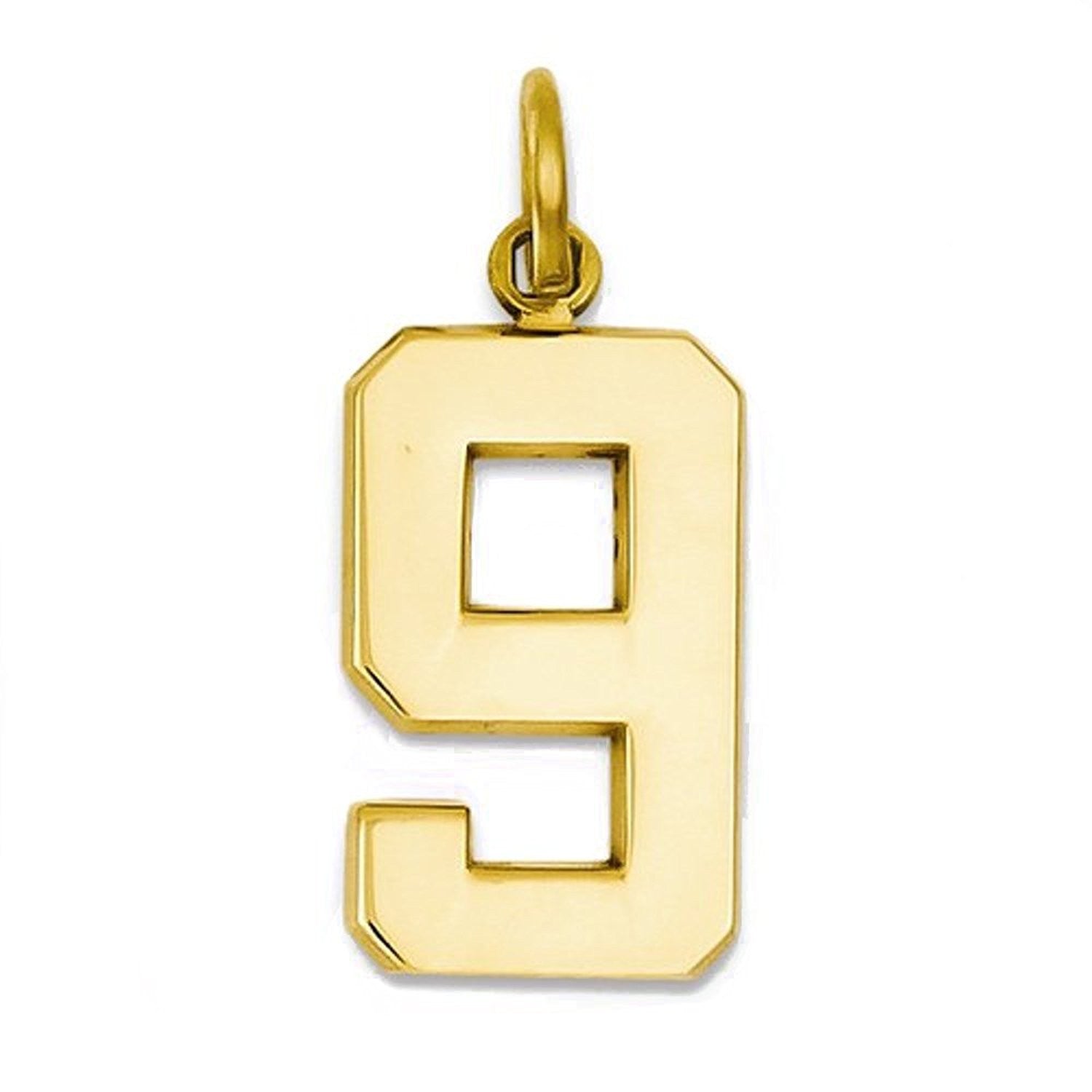 14k Yellow Gold Number 9 Nine Pendant Charm