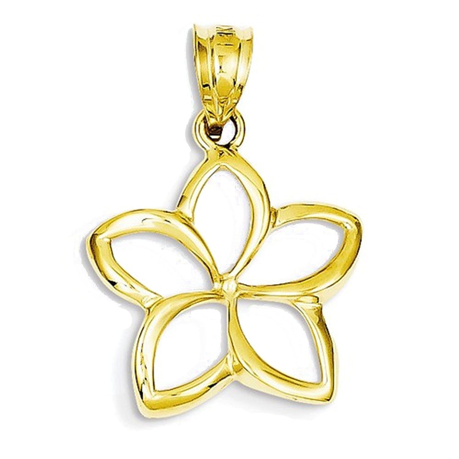 14K Yellow Gold Plumeria Flower Cut Out Open Back Pendant Charm.