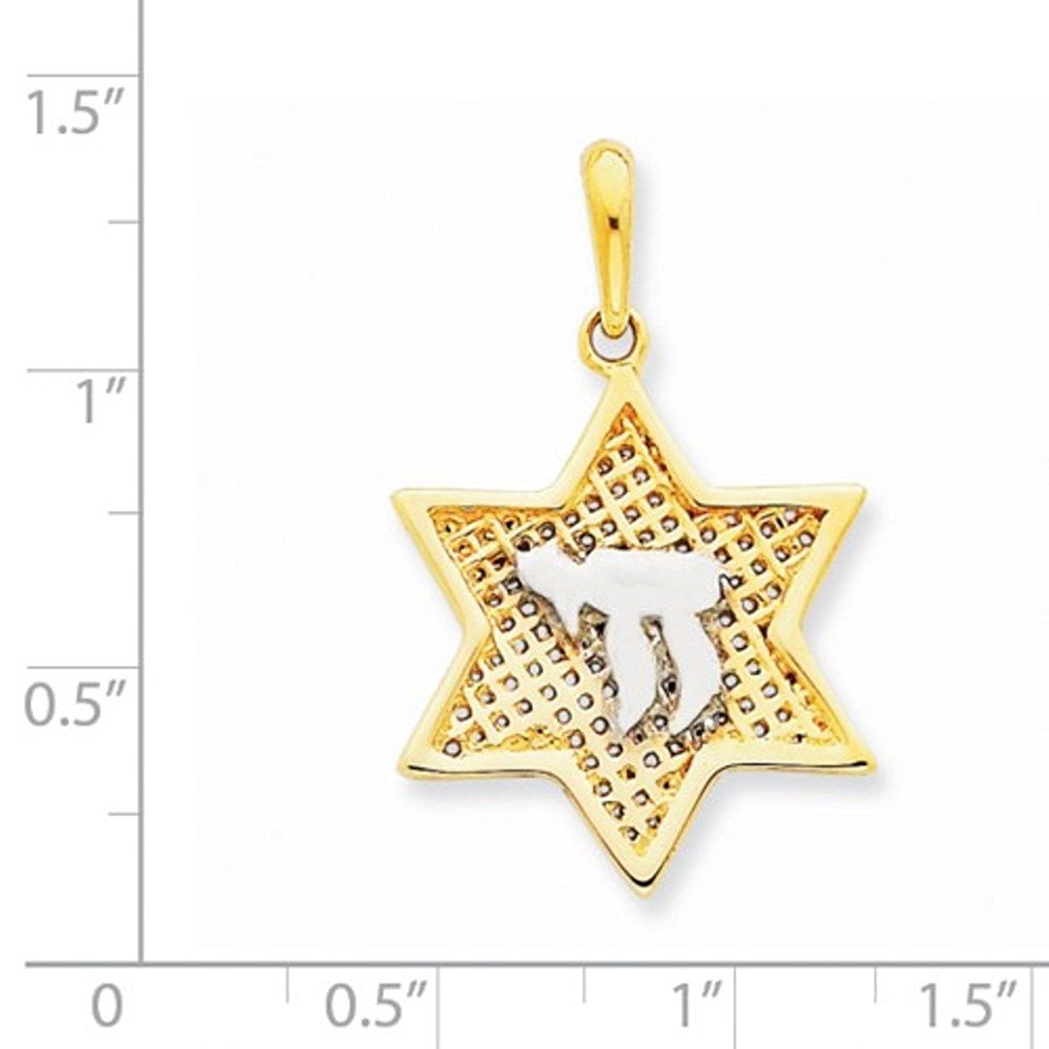 14K Yellow Gold and Rhodium Chai Star Mesh Pendant Charm.