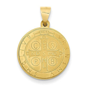 14K Yellow Gold Saint Benedict Round Medal Hollow Pendant Charm.