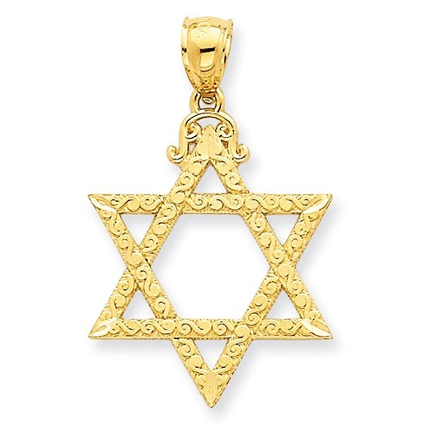 14K Yellow Gold Star of David Pendant Charm.