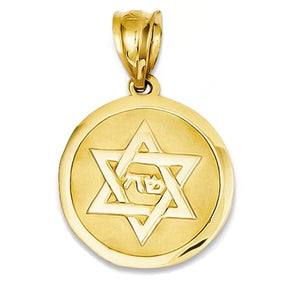 14K Yellow Gold Star of David Round Disc Small Pendant Charm.