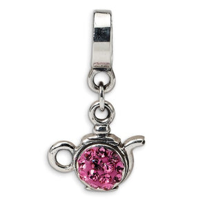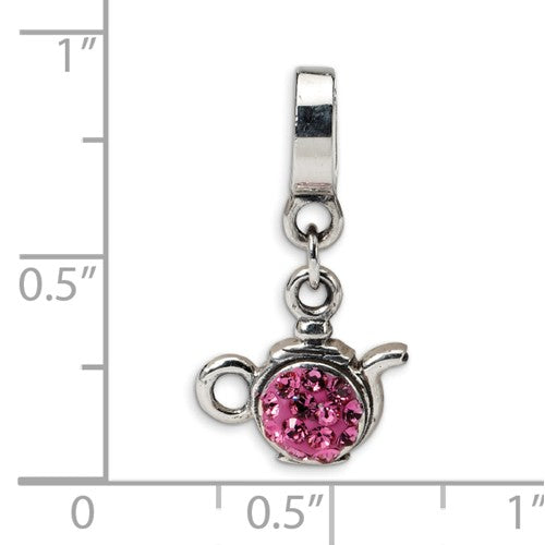 Authentic Reflections Sterling Silver with Swarovski Element Pink Teapot Dangle Bead Charm. Compatible with most major brand bracelets.