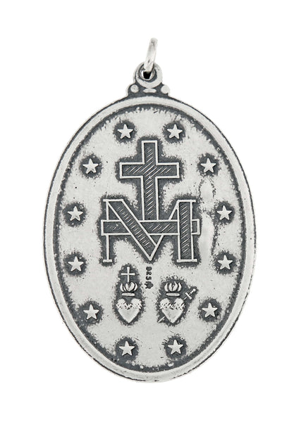 Sterling Silver Blessed Virgin Mary Miraculous Medal Pendant Charm Antique Style Finish