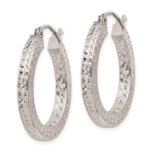 Sterling Silver Diamond Cut Square Tube Round Hoop Earrings 25mm x 3mm