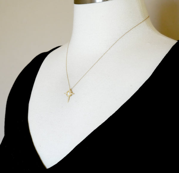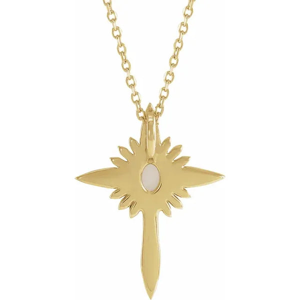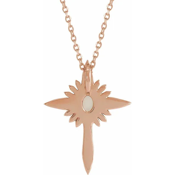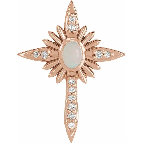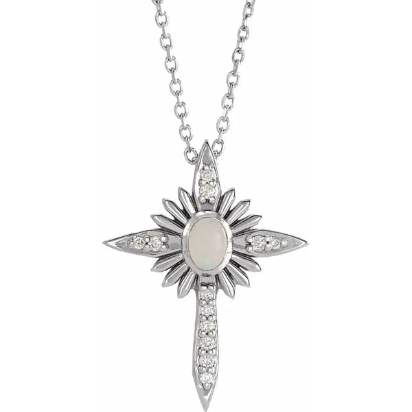 Platinum 14k Yellow Rose White Gold Genuine Opal Diamond Nativity Cross Pendant Charm Necklace