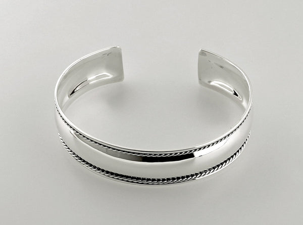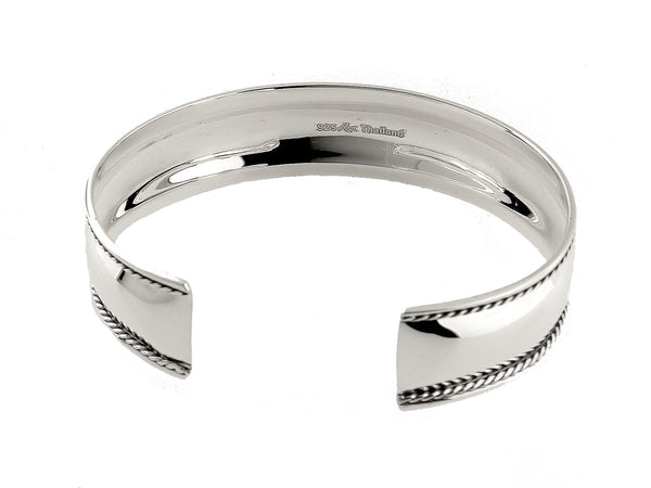 925 Sterling Silver 14mm Antique Style Cuff Bangle Bracelet