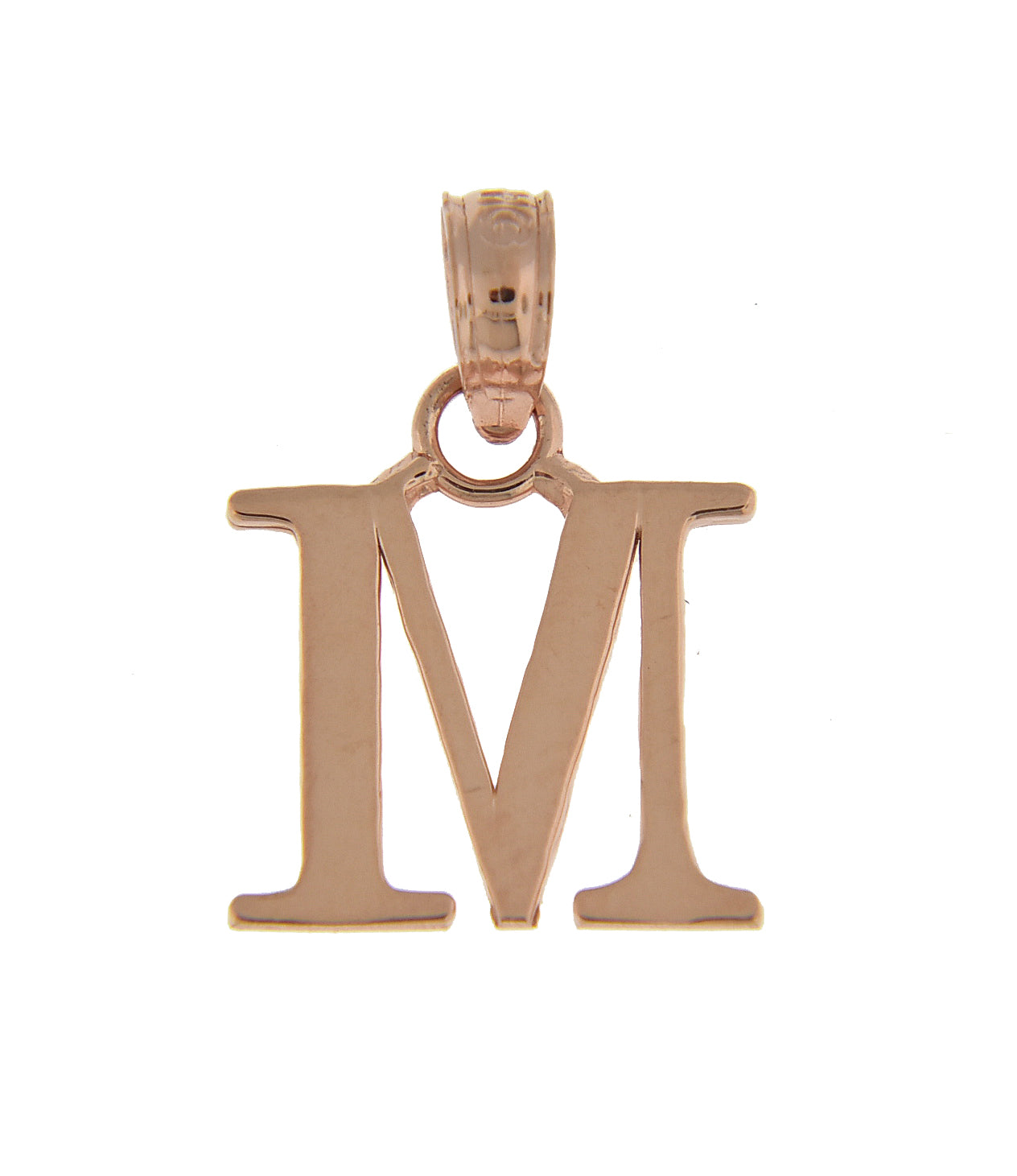 14k rose gold uppercase initial letter m block alphabet pendant charm
