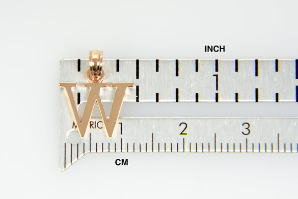 14K Rose Gold Uppercase Initial Letter W Block Alphabet Pendant Charm