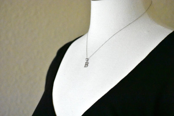 14k white gold uppercase initial letter b block alphabet pendant charm