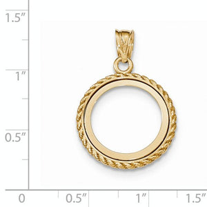 14K Yellow Gold 1/10 oz or One Tenth Ounce American Eagle Coin Holder Polished Rope Prong Bezel Pendant Charm for 16.5mm x 1.3mm Coins