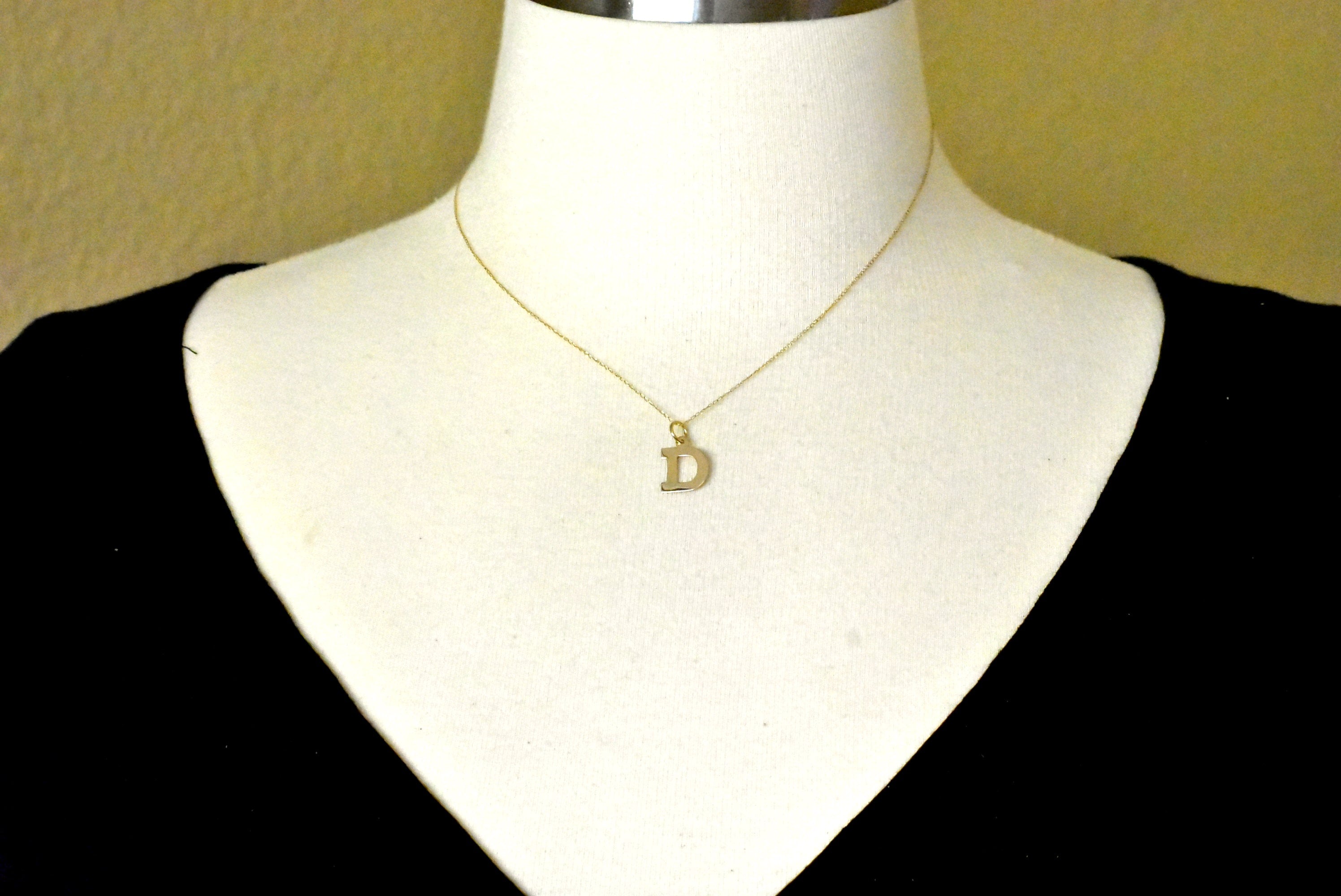 14k yellow gold uppercase initial letter d block alphabet pendant charm